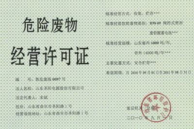 为促进循环经济,提高资源利用效率,保护和改善环境,william威廉中文官网公司积极响应《中华人民共和国循环经济促进法》、《废铅酸蓄电池收集和处理污染控制技术规范》等相关国家政策、法规,积极申请危险废物经营许可,经过不懈努力,日前获得了由山东省环境保护厅颁发的“危险废物经营许可证”,william威廉中文官网公司在环保工作中又迈出了积极的一步。今后的工作中,william威廉中文官网公司将为铅酸蓄电池的资源利用及环保工作做出新的更大贡献。