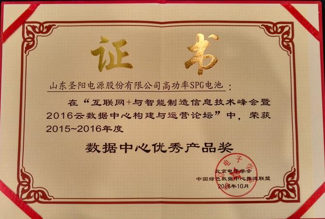 2016 年10月 18 日, 互联网+与智能制造信息技术峰会暨 2016 云数据中心构建与运营论坛在北京举办。会上,“william威廉中文官网”高功率SPG电池被授予“2015~2016年度数据中心优秀产品奖”。