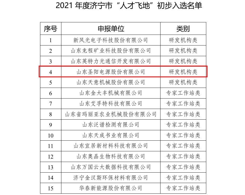 近日,济宁市委人才工作领导小组办公室、济宁市科学技术局发布了《2021年度济宁市“人才飞地”初步入选名单的公示公告》,我公司入选研发机构类公示名单。