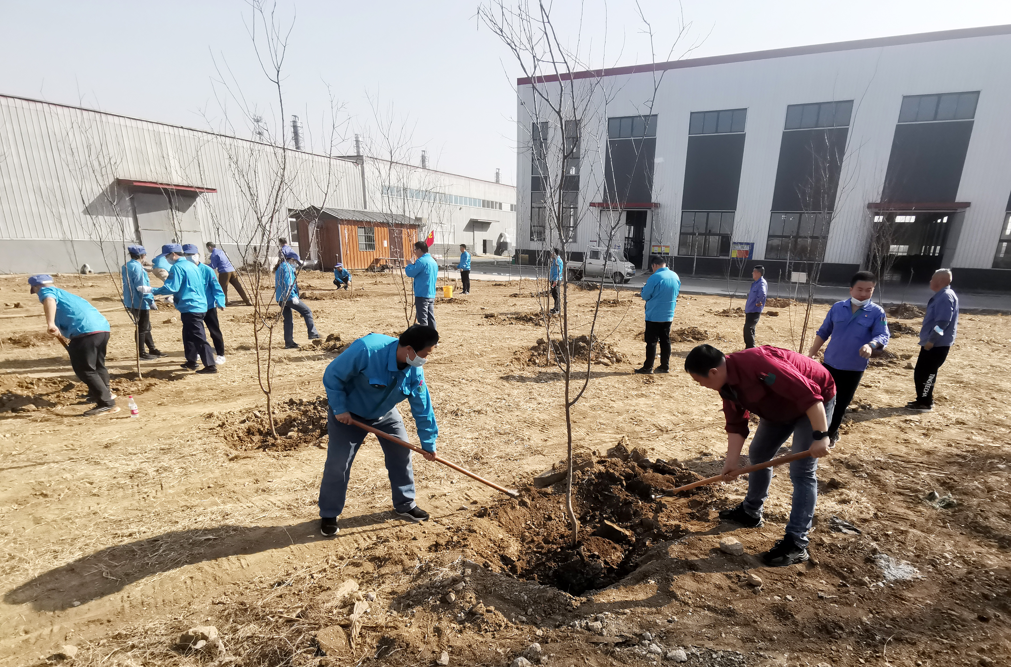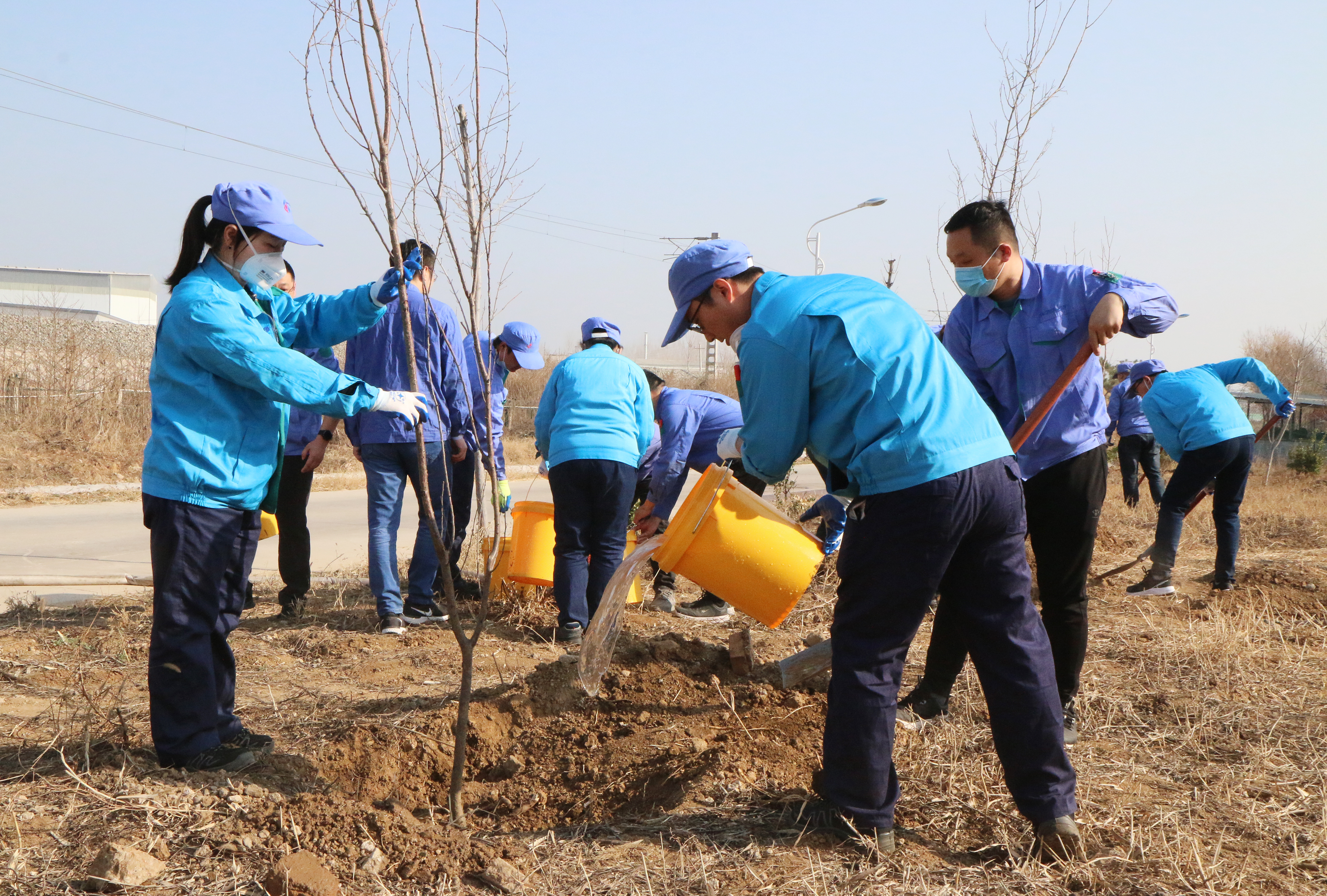 践行生态文明,推动绿色发展。作为国家级绿色工厂,公司把厂区环境建设提升工程作为一项重要工作来抓,每年三月都对厂区进行绿化、美化再提升。春风和煦,万物生发,参加活动的同事们三人一组,挖坑、扛树苗、培土、浇水,劳动热情高涨,不大会儿,一排排树苗昂然挺立,为厂区再添新绿,增添勃勃生机。